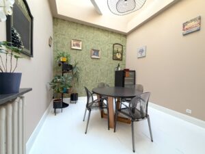 Fruit d’un travail d’orfèvre qui amène une LUMIERE NATURELLE et une vue sur l’EXTÈRIEUR, le PATIO de 11,3 m2 (chauffé ET climatisé) révèle les poutres apparentes de la bâtisse et sa VERRIÈRE à ossature métallique robuste, équipée d’un STORE TAMISANT motorisé